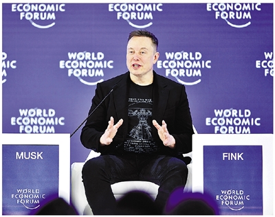 1月22日,美国企业家埃隆·马斯克在瑞士达沃斯举办的世界经济论坛2026年年会上发言。 新华社记者 连漪 摄