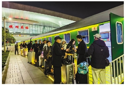 “大家把行李放在身边,一个一个来,不要着急”“携带大件行李的乘客请走这边”……在杭州站,记者看到处处都是等待乘车的旅客,背着大包小包、拉着箱子,在车站工作人员以及志愿者的引导下,售票、取票、安检、候车、进站,现场安全平稳有序。