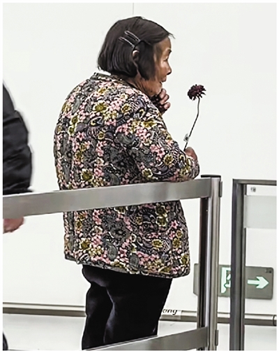 当姜先生推着行李车出现,姜奶奶立刻迎上去,把花塞到儿子手里。记者问,又有儿子接,又有妈妈接,是不是特别高兴?这位60多岁的男人显得有些羞涩,点点头,朴实地笑着说:“很高兴,很高兴。”