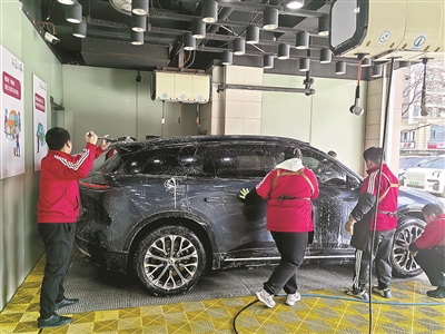 春节前夕是洗车高峰期,店里每日需清洗40余辆车,最多的一天曾洗了100多辆车。这些“心青年”们从清晨8点开门,一直忙碌到傍晚6点,双手被冻得通红,却从未有过半句怨言。
