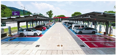 例如,已建成的杭州石德立交桥下地面停车场超级充电站,采用充电堆及液冷超充技术,充电输出功率可根据车机需求与充电模块使用情况智能调配,以减少充电等待时长,有效缓解充电高峰期排队现象。站内还精心打造了集休息室、餐厅、自助零售、AED急救设备、自助洗车等功能于一体的红心驿站,为车主提供全方位的人性化服务。G25长深高速桐庐服务区(南区)也建成了一座光储充一体化智慧充电站,站内新建充电桩108个, 600千瓦的超快充桩可以达到1秒1公里的充电速度,基本实现新能源车“即充即走”。