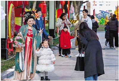 “太平年”游主题线路是余杭在春节期间打造的复合型消费场景之一,串联历史遗址、文化场馆与民俗体验,吸引了大批游客循着“钱氏印记”深度探访安乐塔、安乐禅寺、通济桥、苕溪等沿线景点。“我们正好在余杭游玩,听说附近有‘太平年’遗址,就特意带孩子来感受历史文化。”春节假期,来自上海的杨女士一家在“打卡”完余杭创新推出的“太平年”游主题线路后,还参与了“寻迹钱氏”互动活动。同样,萧山借势热播剧《太平年》,推出“跟着《太平年》游萧山”主题线路,串联楼塔古镇、浙东运河、湘湖等取景地,带动影视IP衍生消费。