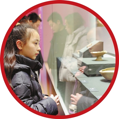 不远处的展柜前,来自江苏的朱先生一家被一件原始瓷兽面鼎吸引。灯光之下,鼎身纹饰层次分明、古朴精美,孩子趴在玻璃柜前久久凝视。“他平时就喜欢历史,与其去人山人海的热门景区,不如带他来这里安安静静地看文物。”朱先生觉得,这样的春节,格外有分量。