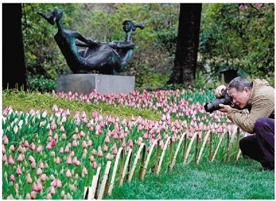 昨日,市气象台官宣,杭州已于2月20日进入气象学意义上的春季,比往年入春时间提前了约半个月。图为2月25日,太子湾公园里春意萌动,阿尔加夫、德马克、神秘长安、白莲等品种的早花郁金香已悄然初放,吸引不少市民游客前来先睹为快。记者 李忠 摄