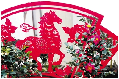 眼下,园内盛开的单体红山茶与多款茶梅品种相映成景,“十八学士”“红露珍”“金盘荔枝”等主力茶花品种陆续进入盛花期。除户外的自然赏景体验,园区登顶处的展示大厅还设有山茶花精品展陈区,融合迎春小品与错落排列的茶花盆栽,三十余种茶花品种清雅亮相;配套的科普展示,系统呈现山茶逾千年的栽培历史;融入传统剪纸元素打造的昂首骏马造型,既寄托“马到成功”的美好祈愿,又暗合早春昂扬生机。