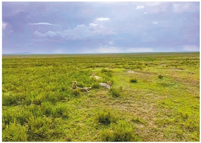 寻找猎豹并不容易,它们没有固定领地,每天在草原上游荡,有时行走的距离超过了20公里。猎豹身上并没有装跟踪器,我和司机只能靠有限的痕迹,比如猎豹吃过的猎物残骸、脚印、秃鹫降落的方向,找它们的身影。猎豹一旦趴在草丛中睡觉,哪怕近在咫尺,也很难发现。