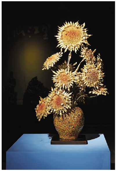 你看《燃烧的向日葵》——我拿梵高的向日葵来对话。梵高画向日葵,是用油彩在画布上追逐太阳,那是西方人对生命燃烧的理解。我用熔铜做向日葵,让铜液在高温中流淌、凝固,向日葵的花瓣有了厚度,有了光影,有了从泥土里生长出来的力量。比利时安特卫普皇家艺术学院的院长看了说:“这让世界看到了梵高《向日葵》的背面。”背面是什么?是东方的视角,是对生命同样的炽热,但用不同的语言说出来。