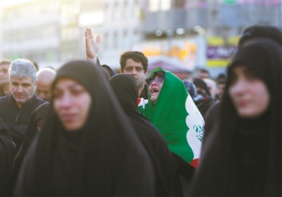 3月1日,民众在伊朗首都德黑兰集会,哀悼伊朗最高领袖哈梅内伊。 新华社发