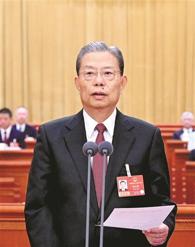 3月5日上午,第十四届全国人民代表大会第四次会议在北京人民大会堂开幕。赵乐际主持开幕会。 新华社记者 申宏 摄