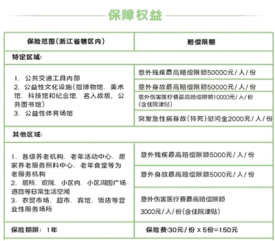 据悉,老年人意外险是杭州为积极应对人口老龄化、提高老年人及其家庭抗风险能力,通过搭建平台、统一招标、购买服务等方式,鼓励和引导商业保险公司参与,为全市老年人量身定制的一份保险。