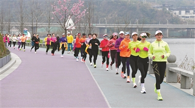 3月8日清晨,建德市马拉松协会举办的“悦动她力量·畅跑新安江”2026年巾帼健康跑欢乐起跑。100多名女性健身爱好者从白沙桥出发,沿着樱花烂漫的新安绿道跑至建德大桥折回,全程约3.8公里,在“三八”妇女节到来之际,用脚步丈量新安江畔最美绿道,展现建德女性积极向前的风采和健康生活的方式。通讯员 宁文武 摄 记者 李忠 文