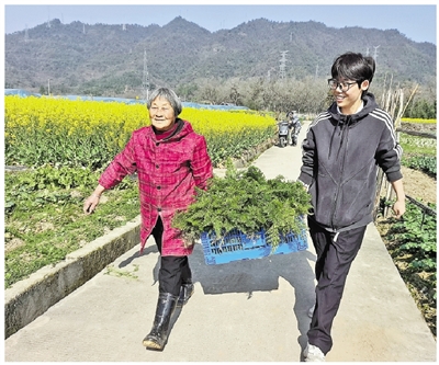 3月11日清晨,建德市更楼街道张家村77岁的菜农卢菊香收到了150元菜款。与以往凌晨三四点赶早市不同,这次她是“坐等”买家上门——“00后”“粮二代”阙婉婷变身“山货先生”来收菜了。