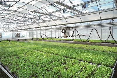 良渚麟海蔬果专业合作社的育苗中心内,基地技术员正通过智慧云平台调控温湿度。水培豌豆苗通过富氢水浸种技术,从播种到上市仅需7—10天。数字化大棚里,“浙樱粉”“浙樱绿”等彩色小番茄垂挂藤间,甜酸各具风味。通过高效备耕,麟海合作社种植基地全年果蔬产量可达3.8万余吨。