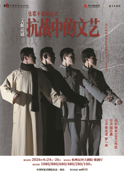 中国国家话剧院首部文献话剧《抗战中的文艺》将于4月24日至26日上演。该剧以波澜壮阔的笔触,真情再现1931年至1945年胸怀爱国之志的文艺家们的求索与奋斗,他们以笔为刃抗争侵略者的铁蹄,用民族自尊点亮国人前行的道路。全剧汇聚了40余位中青年演员,鲜活塑造个性鲜明的文艺群像。