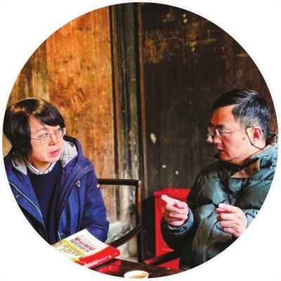 望松堂外不时有路过的游客踱进来,对着精美的雕梁画栋拍照,或者瞅几眼由著名翻译家周克希(也是松阳人)题写的“译者之家”牌匾。在宽敞的大堂上,金晓宇和朋友们一起坐着晒太阳。通常他不插嘴,只静静地听他们说。