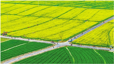 3月21日,杭州市临安区於潜镇光明农场的油菜花竞相绽放,吸引市民前来赏花踏春。记者 法鑫 文 通讯员 胡建强 摄
