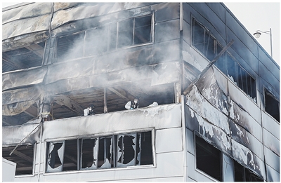 3月21日,救援人员在韩国大田工厂火灾现场工作。新华社发