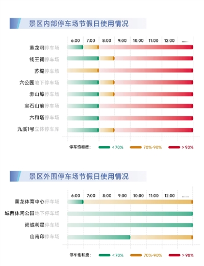 西湖景区对外开放泊位仅约6000个,高峰日瞬时停车需求超2万辆,供需差距明显。旅游旺季8时起,景区停车场普遍饱和,国庆、春节期间日间停车费达30元/小时,高费用也难以抑制高停车需求。