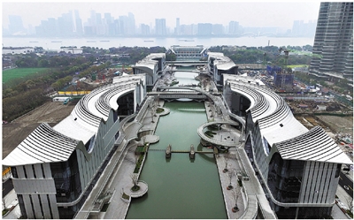 近日,钱江世纪城水云间商业中心整体亮相,标志着该项目从建设阶段全面迈入运营新阶段。该项目以“涟漪水波”为设计灵感,突破传统“盒子商业”模式,构建“一轴三核,珠连共贯”的空间布局,规划生活娱乐、文化艺术、前沿科技三大主题板块,将引入新文创主题馆、数字艺术馆、运动体验空间等多元业态,打造24小时不打烊的开放式滨水商业街区和兼具烟火气与艺术感的生活美学范本,为钱江世纪城从中央商务区向中央活力区(CAZ)转型注入全新动能。 记者 李忠 摄