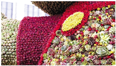 为何选择多肉作为“新衣”主材?西湖区城管局工作人员介绍,多肉植物用于立体花坛有着诸多优势。相较于传统草花,多肉颜值在线、色彩丰富,能呈现出更具层次的景观效果;同时它天生耐旱,立体花坛种植基质少、持水力差,多肉只需每隔10-15天喷水一次即可,是名副其实的“节水小能手”,大幅节约灌溉用水;此外,多肉生长速度缓慢,基本无需频繁修剪,养护管理更为省心,能让“福气猪猪”的完美造型保持更久。