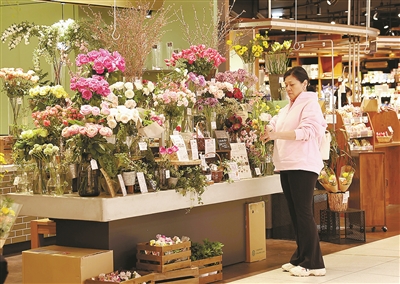 图为近日,市民在日本东京的一家花店选购鲜花。在日本每年3月末至4月初的樱花季,日本民众常出游赏花野餐,这类活动被称为“花见”。日本一项自2020年来追踪每年“花见”餐饮消费成本的指数显示,由于日元贬值和物价上涨,今年“花见”费用相较2020年上涨25%,其中日式甜馒头、饭团等典型赏樱美食上涨幅度最大。