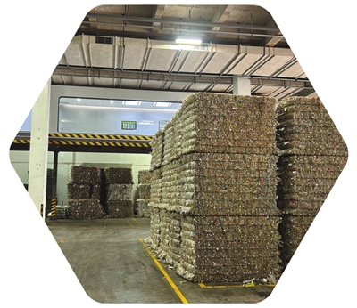 再生资源被打包成标准块,成为可直接使用的绿色原料。