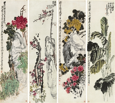 早在印社成立之时,创社四人便已有邀请吴昌硕就任社长之心。1905年,他们与外籍友人谈文论艺、畅谈印学,曾由衷慨叹:“印学自赵悲庵后,薪火将绝矣!近人能此者,惟湖州吴苦铁一人而已。”创社四人对吴昌硕印学成就的钦佩,埋下了西泠印社与吴昌硕缘分的伏笔。彼时的吴昌硕,已是海派书画界公认的领军者,集诗、书、画、印“四绝”于一身,被誉为“石鼓篆书第一人”“文人画最后的高峰”。但四人属意吴昌硕,不只因他印学造诣的高超,更因他还是一位观念超前的艺术改革家。他积极参与海上题襟馆书画会、豫园书画善会等社团组织,广结同人、门生遍布,以开放包容的心态致力于传承中国传统文化。这份守护民族艺术的使命感,恰是四人所认可、尊崇的。