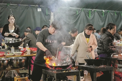 为了让戏迷安心看戏,吃货安心觅食,山下金村整合了7个停车场及千余个免费车位,每日还安排200余名工作人员提供后勤保障。据温岭发布公众号数据,3月28日开演当天就有近10万人次涌入山下金村,戏场周边设置的美食摊位更是撬动超百万元消费。