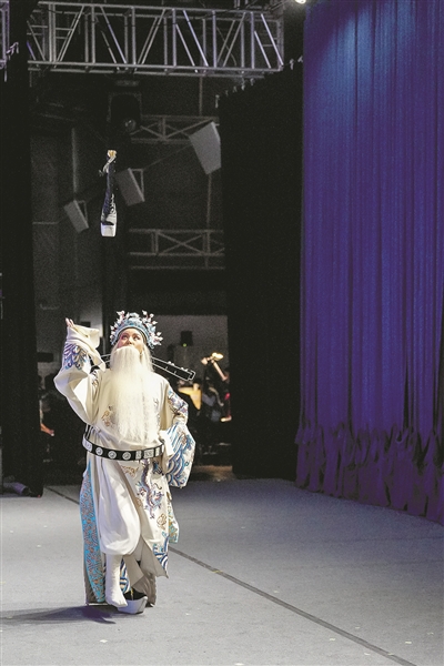 一场戏结束,很多观众并不离开现场,而是从随身带的包里翻出吃的,坐在观众席上看着台上的工作人员忙碌,只为晚上演出不用再次排长队入场。