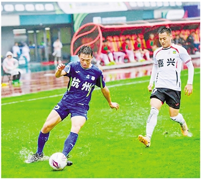 本报讯(记者 奚源)大雨滂沱,挡不住绿茵场上的热情。在4月11日举行的一场2026浙江省城市足球联赛(吴越杯)中,坐镇萧山体育中心体育场的杭州队迎来了嘉兴队的挑战。最终凭借吴昊一和金忆杭的进球,杭州队为主场球迷送上了一场畅快的胜利。同时,奥运冠军孙杨等杭州本土体育明星的现身,也为这场比赛增添了更多的热闹元素。