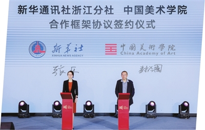 第二项内容,是新华通讯社浙江分社与中国美术学院正式签署框架合作协议。