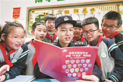 今年4月15日是第十一个全民国家安全教育日,今年的活动主题为“统筹发展和安全 护航‘十五五’新征程”。日前,杭州市公安局临安区分局锦城派出所民警走进临安区晨曦西小学开展全民国家安全教育日主题宣传活动。民警们通过发放宣传手册、开展趣味问答等形式,引导孩子们从小树立 “国家安全、人人有责”的观念与爱国情怀。同学们认真听讲、积极思考,在互动环节踊跃发言,现场气氛热烈。通讯员 胡建强 摄 记者 法鑫 文