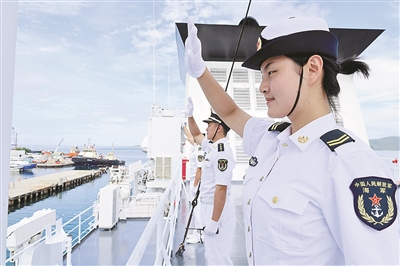 4月15日,执行“和谐使命-2025”任务的中国海军“丝路方舟”号医院船离开巴布亚新几内亚莫尔兹比港。这是医院船官兵分区列队。