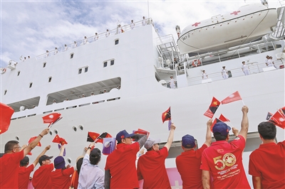 除提供高水平医疗服务外,医院船还举办甲板招待会,组织任务官兵与巴新国防军开展篮球友谊赛,赴中国-巴新友谊学校·布图卡学园参观,走访巴斯里斯克海军基地,与巴新大学医学院开展学术交流。
