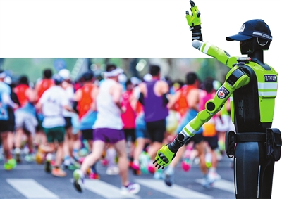 “杭警智行”交通管理机器人护航西湖“半马”。图片由通讯员提供