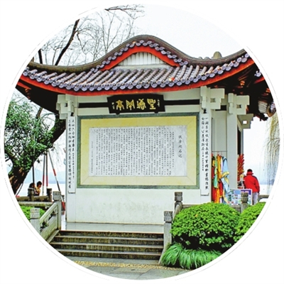 “当时西湖还不叫西湖,正式文书中叫钱唐湖。”《白居易:与君约略说杭州》的作者、杭州市文史研究馆特约研究员司马一民站在这篇碑文前,聊起了这位千年前的“杭州代言人”:长庆二年(822年)7月,白居易获任杭州刺史,10月到任,至长庆四年5月离任,在这“当市长”的不足两年中,他为杭州疏浚城中李泌开凿的六井,以供百姓饮水;修筑钱唐湖堤蓄水,以灌溉千顷良田;把自己积攒下来的“工资”留给了杭州办“民生实事”。