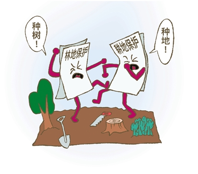 “村里有块地,强调耕地保护的时候,上级部门说这块地是耕地,我们只好把树砍了,复垦为耕地。”西部某地一名村支书介绍,复垦后不久,林业部门来到村里,说这个地块属于林地,要求复绿,否则问责。新华社记者调查发现,当前,基层治理中存在政策来回反复甚至互相“打架”的现象,各吹各的号,各唱各的调,让基层干部疲于应付。漫画 郭尔
