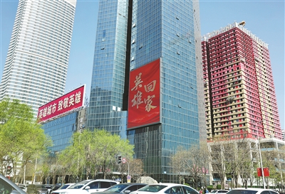 图为新华社记者4月21日拍摄的沈阳街头的标语。第十三批在韩中国人民志愿军烈士遗骸将于4月22日回国。沈阳市以最高礼遇迎接英雄归来,炽烈“中国红”为英雄照亮回家路。