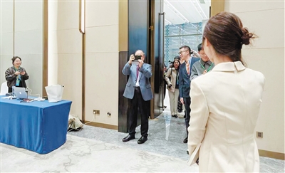 在下午的记者见面会上,文学大咖莫言西装墨镜一进门,就对着一屋子正在拍他的人,掏出手机反客为主地来了一张。