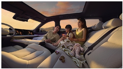 装载能力同样出色,773L常规后备厢容积可轻松容纳13个20寸行李箱,搭配73L下沉式储物格、95L前备厢,各类物品都能有序收纳。座舱舒适配置更是直击家用痛点,打造“AI五件套”舒享体系:双15.6英寸2.5K联屏+63英寸AR-HUD联动,搭载高通8295P芯片与双AI大模型车机,语音交互流畅智能;升级款AI零压云毯座椅2.0,全车四座通风加热+多点位按摩,告别久坐疲惫;6.33L车载冰箱兼顾制冷制热,温奶、冰饮一键满足,再加上智能座舱感知系统,自动适配家人出行状态,把居家般的舒适感完整搬进车内。