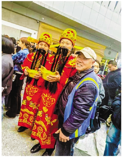 过年时,市场迎财神,老余也拍一张沾沾喜气