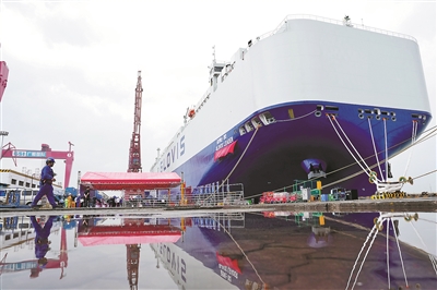 该船单船最大装车量达10800辆,刷新全球同类船舶运力纪录,按5米一台标准车计算,该船可装载的车辆首尾相连的长度超过50公里,是名副其实的“海上巨无霸”,这也标志着我国高端船舶制造能力实现新突破,为全球航运业绿色低碳转型提供了“中国方案”。