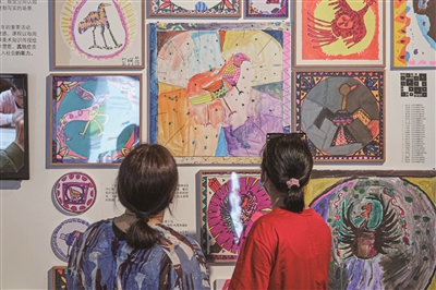 在浙江美术馆三楼的美术教育系展区,有一个特别的展区,展示了一万个太阳心性艺术公益课堂里心智障碍青少年们的《三足金乌》系列画作。这个展区的策展人叫房子琦,是中国美术学院美术教育系的本届毕业研究生,也是公益课堂的老师。