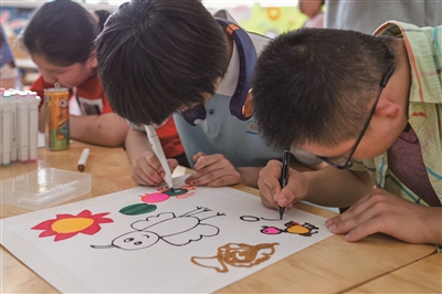 他建议,在以后的课程中可以让同学互相点评对方的画作。“说说‘谁的画好看,哪里画得好’。这里面没有对错,最重要的是让他们思路活跃起来,而且这也是锻炼他们的社交与表达能力。”