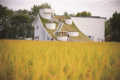 这是杭州市桐庐县桐君街道梅蓉村金黄的稻田与乡村会客厅。2003年6月,浙江省委启动实施“千村示范、万村整治”工程(“千万工程”),从全省4万个村庄中选择1万个左右的行政村进行全面整治,把其中1000个左右的中心村建成全面小康示范村。20年来,“千万工程”久久为功、扎实推进,造就浙江万千美丽乡村,造福万千农民群众,成效显著、影响深远。2018年9月,“千万工程”被联合国环境规划署授予最高环保荣誉——“地球卫士奖”。