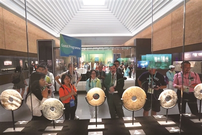 亚残奥委会大家庭成员跟随讲解员,欣赏展出的玉璧,领略良渚文化