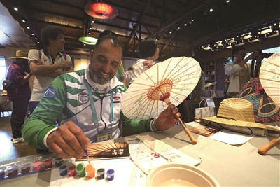 随后,我们前往了反山王陵遗址和良渚国际研学中心,亲身体验良渚文化。在良渚国际研学中心,不少亚残奥委会大家庭成员,体验了制玉和余杭纸伞非遗技艺。“纸伞看似简单,没想到中间藏着许多门道,今天我亲手制作了一把纸伞,很有意思,我一定会好好珍藏它。”伊拉克议会体育与青年委员会主席奇亚·阿卜杜勒看着自己亲手制作的成品纸伞说道。