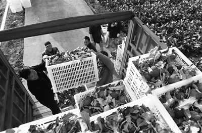 1月3日,在浙江省宁海县胡陈乡海航家庭农场,来自四川凉山彝族自治州的务工人员将采收的西兰花装车。