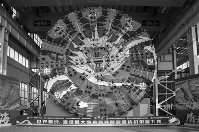 1月10日,超大直径盾构机“定海号”在长沙顺利下线,其最大开挖直径14.57米,总重量达4350吨,将投用于世界最长的海底高铁隧道——甬舟铁路金塘海底隧道建设。这是在铁建重工长沙第一产业园拍摄的“定海号” 超大直径盾构机。