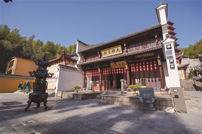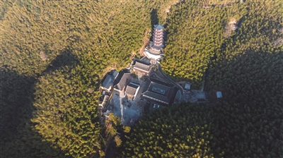 如今的釜托寺,存古扩新,在大雄宝殿的周围,又修建了菩提竹苑居士楼、禅意书画院、四季禅修堂、孝恩塔、新四军休养所旧址纪念馆等许多创新建筑。穿过朴素的天王殿,里面可谓是别有洞天。入眼小桥流水,颇有一种江南园林的感觉。漫步在绿意盎然的釜托寺木栈小道,向上便是孝恩塔。沿着蜿蜒的山径石阶而上,沉醉在自然的景色之中,一时竟也忘记了山路漫长。